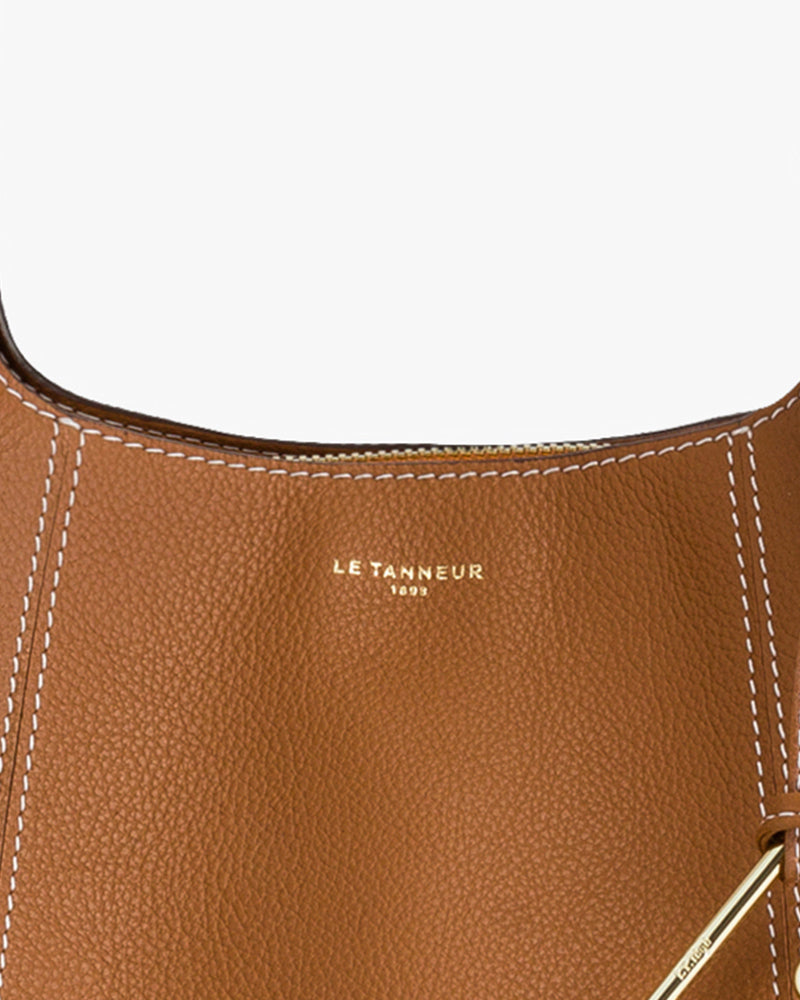 Au premier coup d’œil, le sac Juliette se distingue par ses poignées et son corps qui ne font qu’un. Un montage graphique minimaliste, sans découpe, issu d’un savoir-faire unique en son genre chez Le Tanneur, que nous tenions à mobiliser autour de cette ligne. À l’intérieur une doublure logo signature exclusive ponctuée de T, mais surtout trois compartiments dont un zippé pour plus de sécurité. Autre signature de la maison : le charms en T métallique décoratif qui vient compléter le tableau. Le dernier signe distinctif de notre ligne Juliette est sa capacité à s’approprier les teintes unies de saison. Elle peut pour cela dire merci à son cuir grainé semi-souple pleine fleur qui se prête particulièrement bien au jeu. Un cuir qui lui confère au passage une bonne tenue et de la souplesse, deux caractéristiques importantes pour ce type de modèle.