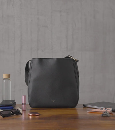 Grand sac hobo Madeleine en cuir de taurillon grainé