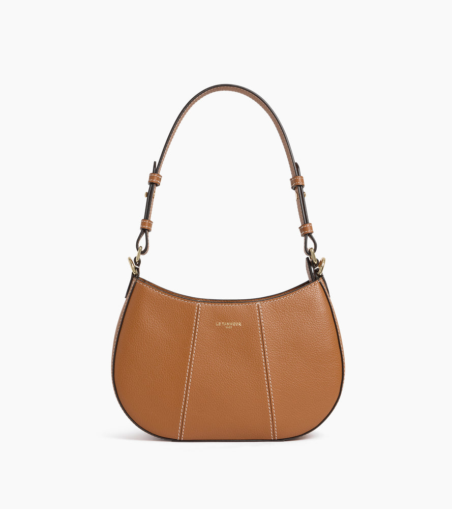 Ce petit sac à main souple, en cuir grainé et aux lignes sans découpe. Il se porte à la main, à l'épaule ou croisé avec sa bandoulière amovible.